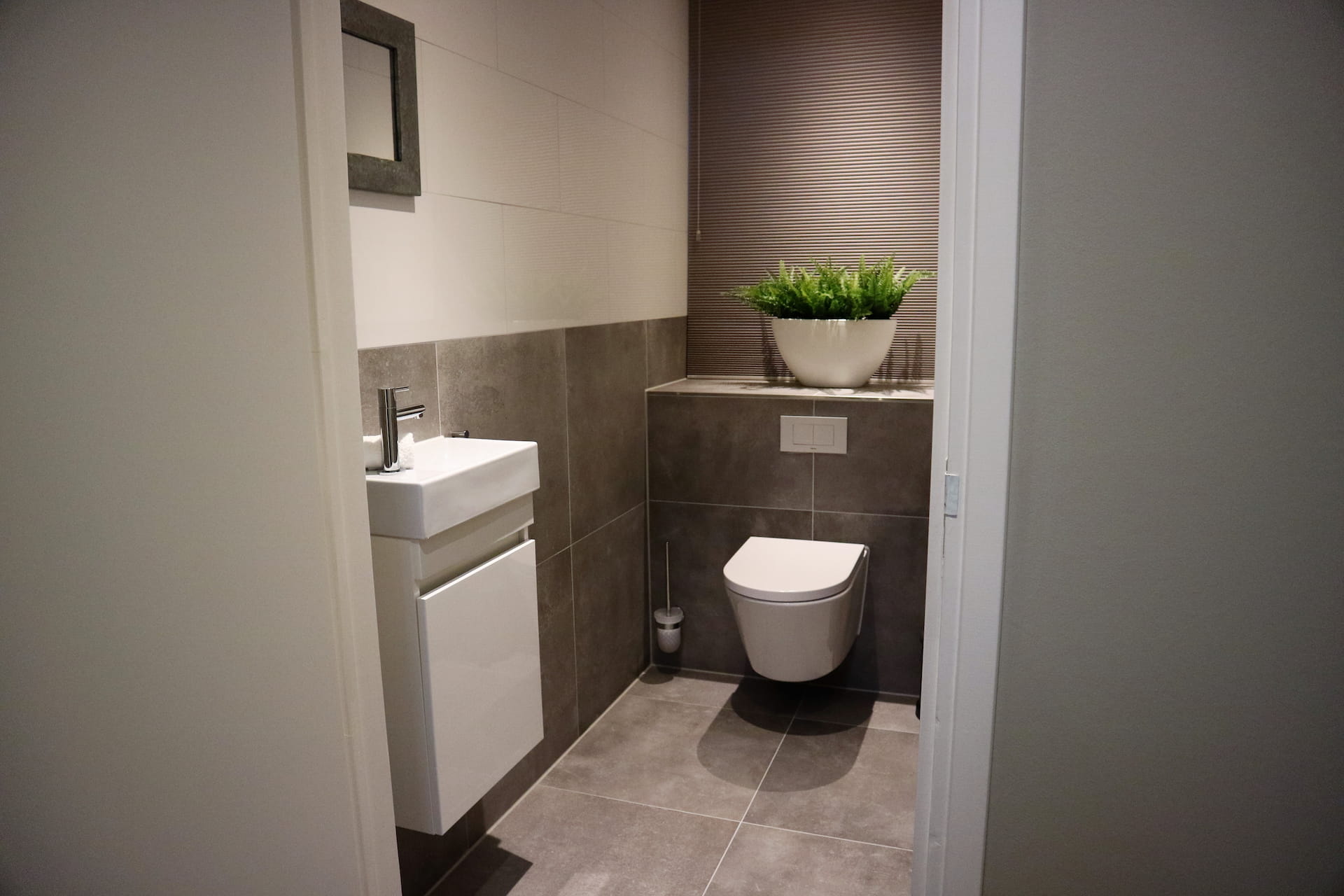 De moderne badkamer is voorzien van een ruime inloopdouche met relaxdouche die wordt afgesloten door een glazen wand zodat het aangenaam blijft om te douchen.
